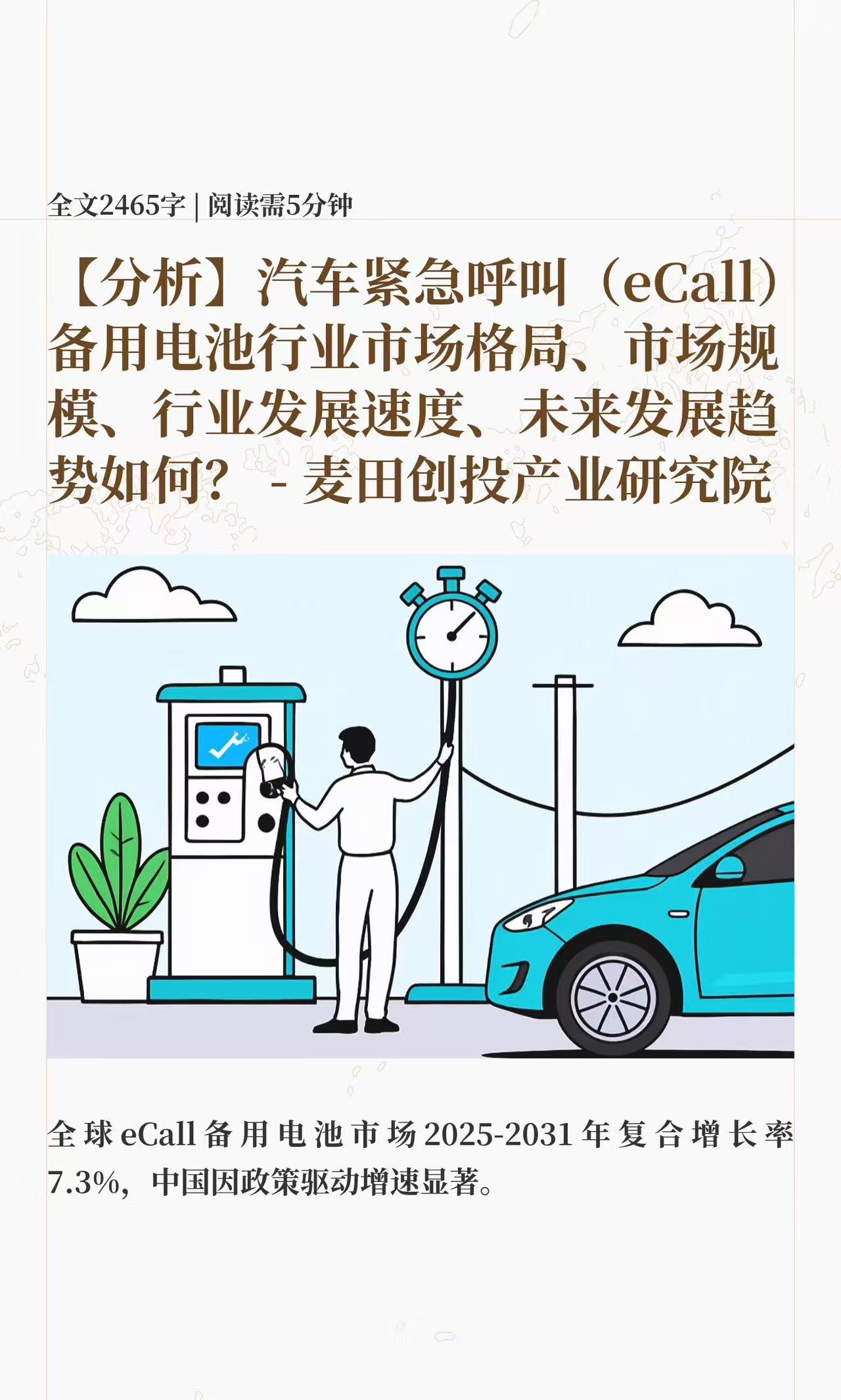 更多本行业研究分析详见麦田创投产业研究院发布的《2025-2031年全球与中国汽车紧急呼叫(eCall)备用电池市场现状研究分析与发展前景行业-机遇,挑战,风险,和最新趋势分析》